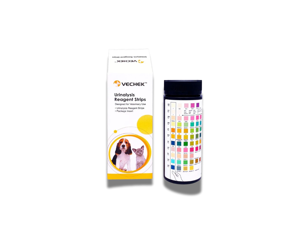Optimiza el diagnóstico y monitoreo de la salud de tus pacientes con las Tiras Reactivas Veterinarias para Uroanálisis de 11 Parámetros VECHEK.